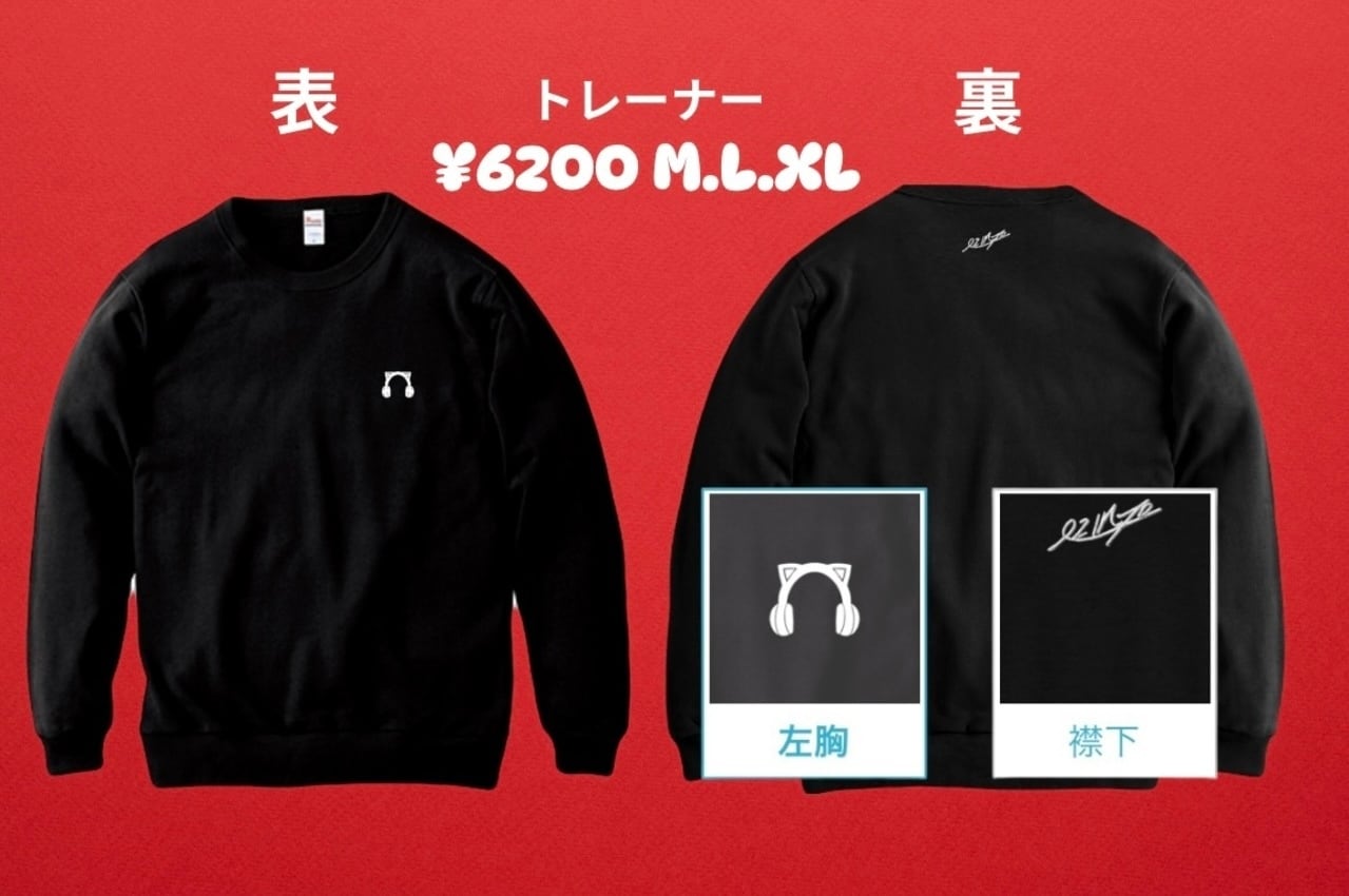 表にはヘッドホン、裏にはサインロゴいりのトレーナー!シンプルで普段使いしやすい!